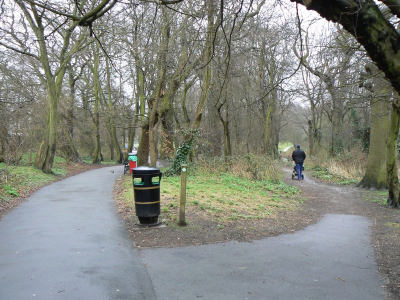I took the bus from Brent Cross Shopping Centre, then the short ride of three stops on bus 232 along the North Circular Road. I started the walk from Brent Street and walked straight into Brent Park. The park was very scruffy and untidy, in need of a makeover. I crossed over Bridge Lane to the next park where the Mutton Brook joins the Dollis Brook to form the River Brent. I took a right turn over and along the Mutton Brook to a subway, where the North Circular Road traffic thunders past. I emerged from the subway into the Dollis Valley Green Walk which was confusing because the Mutton Brook flows through the Dollis Valley Green Walk. I was back to the incessant traffic on the Finchley Road for a short while before returning to the Brookside Walk. Yet another return to the urban environment at Addison Way and Falloden Way before returning again to the Brookside Walk at Northway Gardens and Lyttelton playing fields. The Children's Millennium Wood and play area was deserted due to the drizzle, but a few hardy young lads braved the weather on the football pitches, near to the derelict looking pavilion. Leaving the park by the Hampstead Garden Suburb Synagogue, I crossed the A1 Lyttelton Road to the affluent detached suburbs of East Finchley. I then crossed the Great North Road at East Finchley Station and entered Cherry Tree Wood. There were many squirrels around, close to the pathways, obviously attracted to the food provided by the human visitors to the wood. There is a strange sign 'Lazy Sally' over the hut door near the wood entrance at Fordington Road. It was a short distance to Highgate Wood where a plaque explains that the Ring Walk was launched in September 2005. A steep descent to Muswell Hill Road leads to the undulating Queen's Wood. A pile of purposely abandoned tree trunks provides a good habitat for several rats seen scurrying around as I passed, with a very steep ascent from the wood into Priory Gardens and the end of the walk at Archway Road
