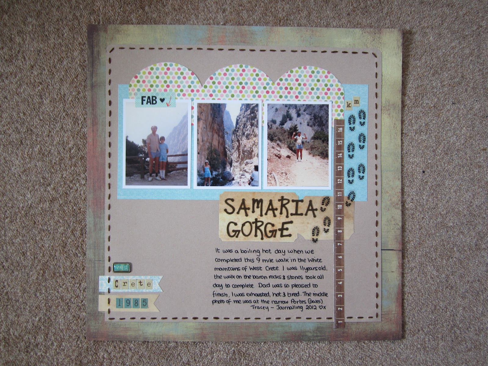 ………….so I thought I would give it a go. I am trying to scrap a load of childhood photos, and I knew straight away what pictures I would use. Some from a very hot sunny Crete family holiday.
