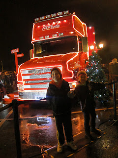 For everyone who knows the ….. Holidays are coming….Holidays are coming … coke cola song, the lorry was in our nearby Tesco tonight. So in the pouring freezing rain we joined a couple of friends to go and take a look. It was brilliant.