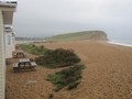 South West Coastal Path No: 71 Total: 579 miles Time Taken: Cycle: Distance: Enjoyment: Weather: 4 hours n/a 10 miles 85% Windy at Times Nature: Blackberries & Pheasants Temp: Cloud: Rain: Visibility: Ground Conditions: 16oC 100% 80% Misty Good General: Bus X53 to West Bay the start of the walk. From the George Hotel I walked around the east side of the harbour, past the Bedford Arms Hotel to the beach. Across the stony beach to the base of West Cliff. Steep climb to the top of West Cliff where the slight drizzle changed to heavy stormy rain. Fortunately the rain didn't last too long, but long enough to get soaked. The rain continued on and off at various intensity throughout the walk. After the descents and an ascent, I reached the caravan site at Burton Freshwater. Another stony beach. I walked along the side of the caravan site to the river Bride looking for a bridge to cross the Burton Cliff. After a couple of fields I crossed the first bridge to the coastal path finger post. More rain and a steady ascent to Burton beach with more stones which are difficult to walk over. Soon realised that I had to be efficient with my walking to reach Abbotsbury in time to catch the bus at 4pm. Unfortunately when I reached Burton Mere and the coastal path finger post pointed to the inland side of the Mere I chose to continue along the side of the beach because the route to the inland was not visible and obvious, a mistake! The path by the side of the beach became more difficult and very slow. At the first opportunity after the Mere I moved inland to a good path along the edge of the fields. Unfortunately again this path finished and I have to continue to follow the coastal path along the edge of the beach. After enjoying looking along the main street of the pretty village of West Bexington from the beach. I followed a lady walking a dog along the track, and as I approached the dog turned and barked and growled at me. The lady said 'don't worry he won't hurt you'. As the dog rushed towards me he pulled the lady over. She had difficulty getting up so I helped her and she was alright, the dog was harmless. Onwards along the rough track with passing places past lots of blackberry bushes. All the passable walking places are blocked off with huge stones. Gradually the track improves as I approached the car park. I climbed a gate to a 'no access' sign, so I reluctantly returned to the beach and walked along the stony beach to a path which peeled off to the left inland. A coastal path milestone stating a mile to Abbotsbury reassured me that I had made the correct decision to return to the stony beach. A conventional stroll along the lane to a finger post where the coastal path crossed a stile into the field, circumnavigating St Catherine's Chapel. I walked into Abbotsbury. My persistent at walking efficiently over the beaches and only short stops for refreshments, had paid off, I have ten minutes to spare. At the main road I chose to turn right, luckily I soon found the bus to end the walk. A satisfying and unusual walk, much enjoyed despite the poor weather. I hope the weather will be better when I revisit the path. Click Here to Go to Previous 'SWCP - Walk 1023' Click Here to Go to Next 'SWCP - Walk 1026' Click Here to Return to 'Lifetime of Walks' Homepage | |||||