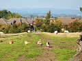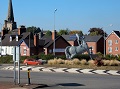 Parked car in Tesco Uttoxeter car park. I visited store to buy food for lunch, then walked to the Bus Station on Bradley Street and caught the No. 403 bus to Abbots Bromley at 11:10am. Good journey via Marchington & Newborough to the Buttercross in Abbots Bromley, the Start of the Walk. I continued my walking journey to John o' Groats following the Staffordshire Way for the whole of the day's walk to Uttoxeter. I walked north along Schoolhouse Lane, passing The Richard Clarke First School on the right to Swan Lane, also on the right. Here I walked to a footpath at the end of Swan Lane. The footpath turned slowly to the left before crossing Dunstal Brook to Radmore Wood and Radmore Fields Farm. I turned left on Radmore Lane before Radmore Fields Farm to a 'T' junction on Woodmill Lane where I turned right, still zig zagging north towards Uttoxeter. At the end of the lane, I continued straight onto a footpath across a mature Sweet Corn field to the corner of Cockshutt Close Wood, part of Bagot Forest, then turned sharp right down hill to Story Brook, noting Squitch House on the top of the hill. I did not cross the brook at this point but followed the west bank of the brook passing Squitch Plantation and Storybrook Plantation, but not crossing the brook until near the top of Black Field where I skirted the far side of a small wood. Here I spied a Buzzard gracefully circling high above on a thermal of rising hot air. I turned half right on the next field at the end of a long narrow wood towards Hill's Wood, where the footpath became very narrow and overgrown. Here I passed a large blackberry bush that was still carrying fruit at this late time in the Autumn. They tasted old. Progressing north I came across two pheasants on the grass verge of the lane after the attractive Marlpitt House Farm. It's very common to see pheasants at this time of year, but always a pleasant surprise. At the north end of the farm lane the Way followed Hobb Lane from the left, north for a short distance, approximately 200 metres (yards) to a footpath on the left leading to New Thorntree Farm, passing on the right. The footpath zig zagged in a northernly direction, passing Scounslow Green & Hanging Wicket Farm, both on the right to Quee Lane, where I turned left for a short distance, 400 metres (400 yds) to a junction of a lane from the right, passing Thorn Tree Farm. In the field on the right before the junction, I saw a small herd of bullocks, bringing back memories of previous encounters of bullocks on many walks down the years. Note, the Way crosses Quee Lane into the bullock field and continues in a northerly direction across this field before turning left in the next field to the lane. At the junction of the un-named lane, I turned right to skirt the bullocks field to rejoin the Way at the end of the field on the left, to again walk diagonally across the next field to Knightland Farm where I stopped for a well earned rest to enjoy my lunch. Sufficiently fed and watered I continued north to Knightfield Farm and Cullamore Lane. As with Hobb Lane earlier but this time a shorter distance. Where the lane turned right, I continued north again through a narrow overgrown path between two high hedges, leading to a 'Y' junction with Timber Lane where I continued on the right arm of the junction. As I passed Field Head farm I was surprised to see Chickens in the same field as Sheep, just before the housing development of Balance Hill. I don't know why I was surprised because this is quite common for chickens to stray from their enclosure into the adjacent field. I walked through the new housing estate following footpaths and cul-de-sacs of Balance Hill to the roundabout on the A518 leading into Uttoxeter. I noted a hedge of brightly coloured red leaves on the footpath and a very attractive house with solar panels in Churchill Close. Care required down the slope of the narrow footpath leading down to the roundabout. (Now converted into steps). Again with care, I walked north on the A518, crossing the duel tracked railway and the Picknal Brook into the town centre of Uttoxeter. Immediately after crossing the long road bridge, I was surprised to find a magnificent huge Centaur in the middle of the roundabout straight infront of me. A wonderful piece of artwork to be admired. Over the roundabout to continue on the A518 I passed the Brookside Business Park on the right to the Dovefields Retail Park and the Tesco Store Car Park. The end of the walk. Yet another most enjoyable and varied walk on my journey to the north of Scotland. Have fun and enjoy the British seasons.