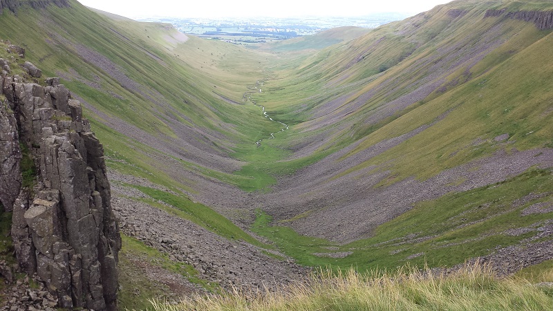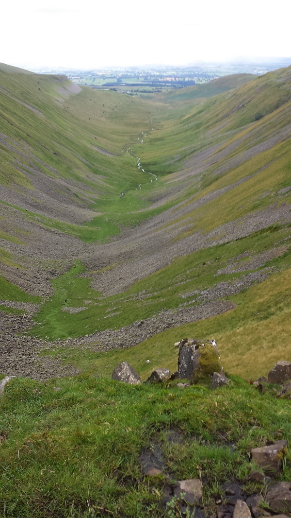 Pennine Way No.11 Total: 163.5 miles Description: Drove to Cow Green reservoir and parked in Cow Green car park. Walked to the gated road along the east side of the reservoir. Rounded the dam down to the bridge over the River Tees above Cauldron Snout waterfall. Continued along the good track to Birkdale and beyond, where the track turned north. The Pennine Way track continued along Maize Beck. Stopped for lunch out of the wind in a rocky dip, but soon continued to a footbridge where we discussed which side of the river we would walk. After much debate we chose the south side of the bridge, so we used the footbridge. We soon realised we had made the correct decision, because we were walking a well defined path, whereas the path on the north side could not be seen. As we approached High Cup Plain we passed many horsed with their foals. As we neared High Cup Nick Eddie was walking in front of me and continued along the path which slowly took him to the south side of High Cup Scar. I shouted him but he couldn't hear. The distance between us was slowly increasing, so as the situation became hopeless I texted him. To my surprise the text was sent. I waited and eventually Eddie realised his mistake and retraced his steps back to me on the lip of High Cup Nick. We both took lots of photos then took the stony track to the north of the Nick called 'Narrow Gate'. At first the path did not lose height, but after almost two kilometers the path slowly descended so that Dufton Pike could be easily seen on the right. Past Dodd Hill to Bow Hall and the first tarmac road since Cow Green reservoir. Turned right at Town Head into the village, where my car had been parked the previous night in the village car park. I had completed the whole of the Pennine Way, first started almost 35 years to the day. We took the ceremonial photos then drove back to Cow Green reservoir where Eddie's car was parked. As we drove out of Dufton we saw a walker who we knew wanted a lift to Appleby, so we stopped and took him to Appleby station. He was going back to London by train the next day, so was pleased. Thanks for Eddie for assisting me on this section and the previous section Dufton (9 July 1983) to Kirk Yetholm (24 July 1983). “All's well that ends well.” Thanks Eddie. Location: Start of Walk Click Here to Go to Previous 'Pennine Way - No. 10' Click Here to Go to Next 'Pennine Way - No. 12' Click Here to Return to 'Lifetime of Walks' Homepage | |||||
