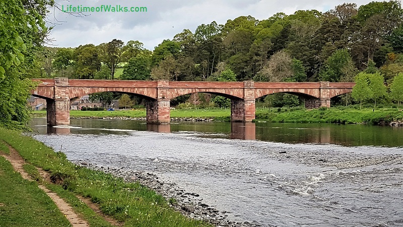 I parked the car at Hiltonshill by the side of the road in a lane. This brought back memories of parking the car in the same spot when I completed the previous section of St Cuthbert's Way on 14 September 2016 - see Walk No. 1136. There were no problems this time as I parked with extreme caution. It was easy walking along a very quiet lane to Maxton Village, past many bright yellow fields of rape seed oil plants. Views were beautiful in the lovely warm sunshine, especially with the Eildon Hills in the distance. I crossed the old railway track bed just before Maxton, which was easy for me to imagine the old steam trains passing under the bridge, with the engine smoke engulfing me before slowly dispersing. Care was required at the main road A699, especially when crossing to the lane of 'St Cuthbert's Way' to the church, where wild flowers were seen on the edges of the lane. Signs were good en route showing the official route of the 'Way.' It was good to see and read about the old Maxton Church on the information board. I didn't visit the church due to lack of time (a long day travelling from home) but it would always be worthwhile if time allowed. Rounding the church I entered the wood where the first of many board walks made the journey much easier, especially the steps up and down the steep-sided banks of the outside curve of the river. However, the elevation provided fine views of the unspoilt river in the Tweed Valley, which was a paradise for fly fishermen, and I'm sure the few ladies who also like to enjoy the thrill of the sport as well as the calm and peaceful surroundings. I met a walking couple near Fens Farm who were interesting to chat to. They recommended I continue walking the Southern Uplands Way to the North Sea coast, then walk the coastal paths around to Edinburgh. That was a great suggestion, but how much holiday can a retired person have each year? Answers on a postcard please to the Prime Minister. On second thoughts, don't bother as us old uns will be taxed even more. I continued around the bend to the left to the picturesque Mertoun Bridge, a popular location for fly fishing, near the mill. Further round the bend I was amazed to see Mrs duck and her eight young ducklings, frantically swimming up-stream. Next, I passed the almost deserted St Boswells golf course which was surprising on a lovely sunny day. From the golf course it was a steep ascent to the village of St Boswells. There were more alleyways to the river bank and more board walks around the steep side of the river bank. Another descent followed, through the woods down to river level and more river bends to the suspension bridge across the river at Tweed Horizons. It was a steep ascent from the bridge (which shouldn't be crossed) to excellent views of the river and the Eildon Hills. There the 'Way' leaves the river and heads for the village, Newtown St Boswells, then up the valley of Bowden Burn, under the A68 by-pass road to the village and the B6340, the old road through the village, at Baillie Hall by Cook's Van Hire. It was a short walk up the B6340 to the shops and the bus stop, where I caught the Bus 51 back to the car at Hiltonshill. It had been a near perfect walk along the River Tweed.