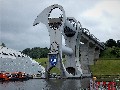 Continuing with my adventure towards John o' Groats, I drove to Allandale Village where I parked the car in Antonine Gate off the B816 Main Road near Banknock. I walked east along the main road to the first bus stop and caught the bus X37 to Falkirk Town Bus Station, Scotland. After leaving the bus in the Bus Station I walked south west through the town centre towards High Station via St. Crispin's Place B8080 & Cow Wynd B803. I approached the Union Canal in the opposite direction from when I left the canal on the previous section of the walk. This time I turned right to walk along the canal towards Banknock, at first north for approximately 200 metres (200 yards), then west for approximately 1.25 Km (1250 yards), until I reached my first lock on the canal. This was a double lock that had two locks end to end, which has to be treated as one lock for navigation. This ensures the bottom lock has sufficient water to operate safely which means a boat travelling from west to east, or east to west has to complete both locks before another vessel can use the locks. As always when using a lock, the water level in the lock has to be correct before operation. From the basin at the bottom of the locks, the canal turns north for a short distance to Roughcastle Tunnel South Portal. The tunnel is virtually straight for 180 metres (180 yards), which is under the course of the 'Military Way' and The 'Antonine Wall'. This may seem a short distance but when there is only minimum lighting with a low barrier between the towpath and the canal, extra care is required to negotiate the towpath with uneven surfaces in places which cannot be seen without a torch. I learnt the hard way. No, I didn't fall into the canal, but I did have a few hairy moments. I strongly recommend a torch, especially if meeting other walkers moving in the opposite direction. When I was about half way through the tunnel a narrow boat passed me travelling in the opposite direction, which was another strange and first experience. As I reached the North Portal of the canal I was greeted with a fine view of the top section of the Falkirk Wheel, with its hoops to support the canal bed. When I reached the first hoop I enjoyed the scenery all around and then slowly descended the embankment to reach the miniature models of The Kelpies. I was surprised to see The Kelpies but admired the quality of the two models. I must admit that after seeing the real Kelpies, the models were a little disappointing, but if the situation had been reversed I would have been impressed twice. After admiring the Wheel from all angles I decided to visit the path of the 'Antonine Wall' and the Site of the 'Roughcastle Roman Fort'. I followed the John Muir Way up the slope to the sites, which had a big area to walk around. I must admit I was disappointed with lack of anything concrete to observe, only the earthworks, but I was impressed with the numerous small information boards describing each area. I did think that in view of the many thousands of visitors every year, it would be a good idea to include at the site a small area of a full size replica of the present day best estimate for the actual Wall and Fort. Continuing I reached the track at the west end of the site and decided to follow the lane into Bonnybridge Village, so keeping to the John Muir Way which followed Bonnyside Road until Bonnymuir Place where the Way passed under the canal via a small tunnel to the towpath on the north bank of the canal and via the B816 at Bridge Street. When I reached the Millennium Lift Bridge, I was pleasantly surprised to see the traffic was stationary and the bridge was in operation. I stayed around the bridge and waited for a small sailing vessel with a very tall mast, which was obviously laid flat, to pass under the bridge. After the boat had passed, the bridge section was lowered to allow the waiting traffic to pass. The bridge section was raised horizontally on four legs, with each leg controlled automatically in time with the other three legs. I continued my walk along the canal towards the south west until I reached the next lock number 17, which looked like a mini waterfall from a distance. To my surprise the lock had an old half demolished Warehouse on the towpath side of the canal and a large car park on the opposite side, connected by a small footbridge. The warehouse looked like it was of the same design as a previous old warehouse I had passed earlier on the Union Canal. Onwards on the good tarmac towpath I soon reached the bridge carrying the lane of Cumbernauld Road just before the M80 motorway. I turned left and walked south on the lane to the B816, where I turned left again into Allandale Village and soon reached the car parked on the right, in Antonine Gate. This was yet another excellent day on my adventure, with lots of surprises which in my view is highly recommended, especially if the weather is good. If time allows take a trip on a tourist pleasure boat through the experience of the Falkirk Wheel and/or visit the nearby Kelpies. You will be impressed I'm sure. Have fun.