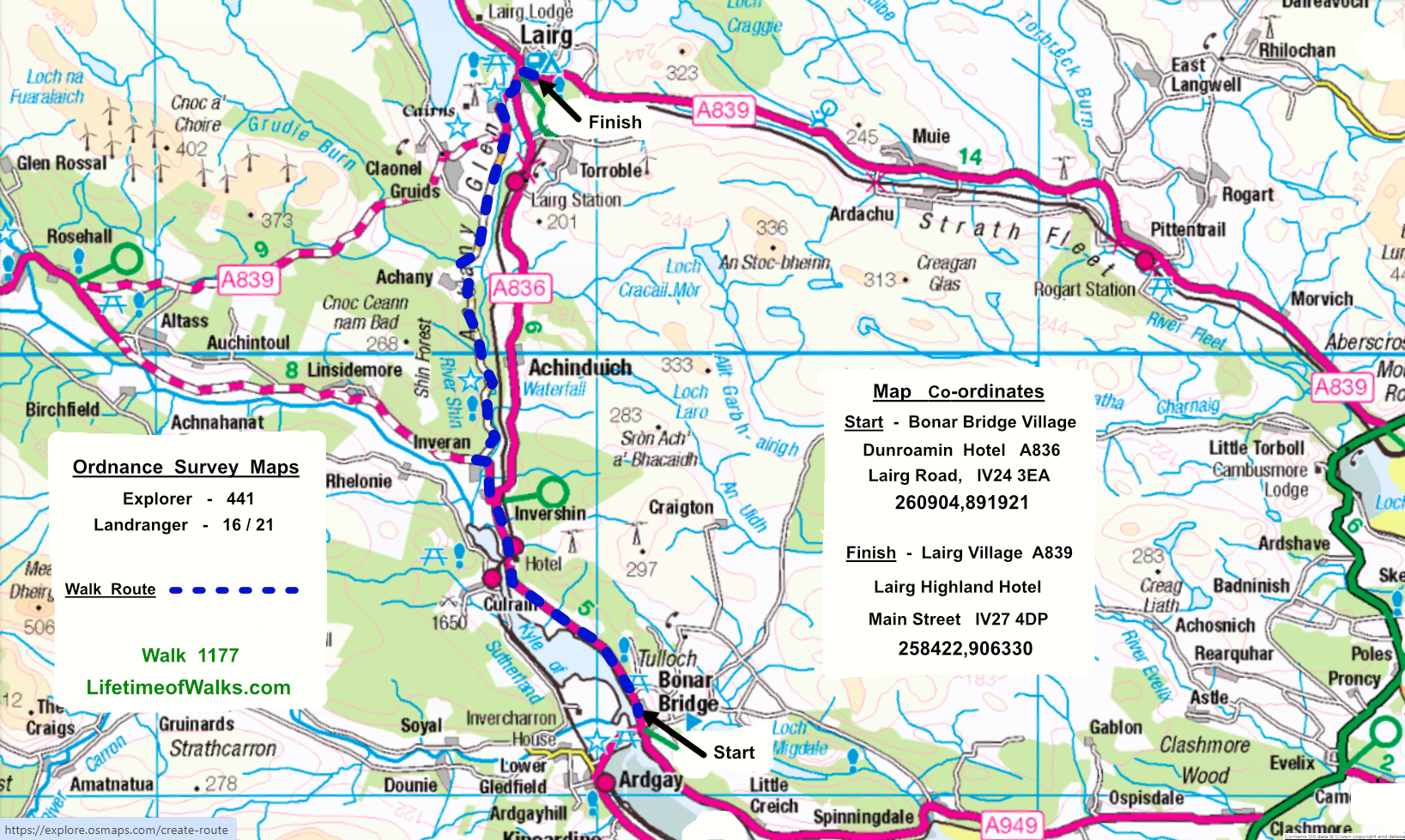 Finish: at Lairg Highland Hotel A839 Click Here for Previous Walk on the Fill-In Walk - Walk 1175 Click Here for Next Walk on the Fill-In Walk - Walk 1178 Click Here to Return to 'Lifetime of Walks' Homepage | |||||||