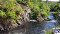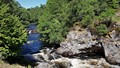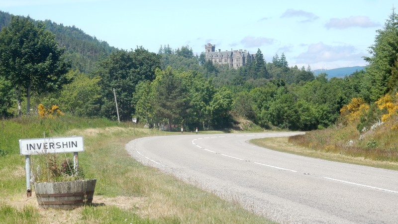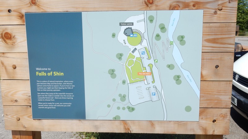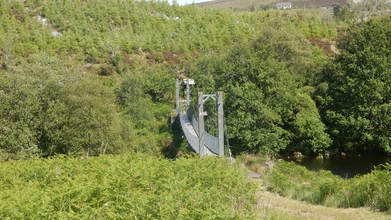 No bus information in the hotel, which was surprising considering the bus shelter was alongside the hotel. More surprises, there was no bus information in the bus shelter either. I eventually caught the Bus 62 from the hotel on Main Street Lairg, to the Post Office at Bonar Bridge. Upon arrival I immediately started walking along the A836 road from the Post Office near the Bonar Bridge Suspension Bridge, which carries the traffic over the Kyle of Sutherland Waterway. I hurried along the road, passing the War Memorial, a makeshift car park on the left, and the Dunroamin Hotel on the right, (bad memories). I was soon out into the countryside, enjoying the sounds and smells of the Scottish Highlands. Here I immediately passed Maikle Wood, Balblair Estate with its Majestic Mansion, and fields of buttercups. Taking care with the speedy traffic, rushing to work, I soon reached the Invershin Hotel and on the opposite side of the valley, the village of Culrain, with its dark looking Carbisdale Castle (House), just after the railway bridge. I noticed the footpath from the A836 road to the railway station and decided to investigate the opposite direction over the bridge. It was very interesting to see the big sturdy bridge up close. Recommended. When I reached the outskirts of Invershin Village, the road split into two main roads. The A836 continuing north but on the east side of the railway track and the A837 towards Invercassley and Durness, on the west side of the railway. I opted to take the A837 road to the left so that I would then reach the small quieter road on the west side of the River Shin, the B864 Road. Before this road junction I crossed the new Shin Bridge over the River Shin with the old Shin Bridge alongside. Notice the 'Dangerous Structure Keep Off' signs by the old bridge. I immediately turned right from the A837 to the quieter single track B864 road along Achany Glen. This road was very twisty and narrow, with dense flora on both sides of the road. Not many opportunities for photographs until the Falls of Shin, apart from the odd glimpse of the river. There were good paths with steps down to the observation platforms of the Falls of Shin, which I found to be extremely captivating after a few minutes watching carefully. The salmon were jumping up the falls, so lots of patience was required to capture the moment the fish left the water. I could see that the task for the fish, to get to the top of the falls almost impossible, but obviously the fish's instinct meant the task had to be completed. I found more forests on both sides of the Glen until I reached the river tributary of Grudie Burn, where the landscape opened up to good views all around. Eventually I reached the footpath to the railway station with a good view of the suspension bridge over the River Shin. I couldn't resist a visit to the bridge for more photos. Forever onwards, I passed many fields and a few dwellings to reach the main A839 road at a roundabout. Here I found the Little Loch Shin southerly River Control Dam very intriguing, however there were limited views of the establishment due to security. I continued ahead to the road bridge over Little Loch Shin, where I turned left at the A836 road from Bonar Bridge, to walk into the village to find the accommodation. Just before the road junction with the A839, I noticed a very impressive 'Duck House' near the middle of Little Loch Shin. This reminded me of the recent Members of Parliament Expense Scandal, where one Member of Parliament claimed the cost of a Duck House in his own back garden. At the A839 road junction I turned right into Main Street to see the village Free Church on the left and soon after the Hotel and bus stop on the right. This was another wonderful walk in the varied and green British Countryside. It's anyone's guess what the walker will find around the next corner. The end of the walk.