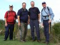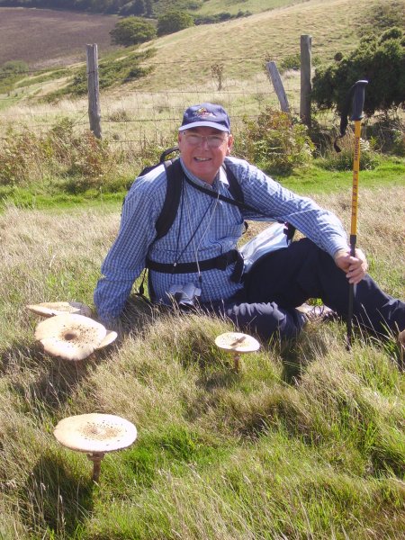 'AA' No Through Road No. 230 Total 1027.5 miles Time Taken: 2.5 hrs Distance: Enjoyment: Weather: Sunny Periods 11:15 am - 1:50 pm 5.5 miles 90% Beautiful Lunchtime Walk Temp: Cloud: Rain: Visibility: Ground Conditions: Wild Life: Spiders 23oC 70% None Good Excellent Underfoot Mushrooms Total AA: Total MH: Total LD: Total AW: Other: Total Distance: 1027.5 mls 931.5 mls 1823.5 mls 162 mls 941 mls 4885.5 miles Companions: (Derek) Ken, Larry & Dennis Points of Interest and LINKS: Isle of Wight Blackgang Chine St Catherine's Hill St Catherine's Tower St Catherine's Down Hoy's Monument Niton Down Niton Village The Undercliff West Cliff St Catherine's Point St Catherine's LighthouseDescription: 205 of 205 'AA' Walks completed. Fifteen walks duplicated to give a grand total of 230 'AA' walks finished. The whole of the 'AA' walking book done and dusted. What do I do now? Parked at start of walk, the viewpoint at Blackgang by Gore Cliff, just off the A3055. The weather was so good we couldn't resist the temptation of the ice cream van in the car park. My ice cream rolled off the cone and into the car park gravel. Good start. We crossed the main road, A3055, and climbed the steps leading to the fields rising up to St Catherine's Tower, locally called the Pepper Pot. At the top of St Catherine's Hill, the Oratory (or Chapel) has now gone, leaving only the unused lighthouse or Pepper Pot. From the lighthouse & adjacent Ordanance Survey (OS) Column, we followed the walk description precisely, but with difficulty. The stile at point '3' does not exist, but a stile exists close to point '10', rather than point '4'. The unofficial route and easy path to follow to cattle grid at point '5', is on the left hand side of the fence from the tower. That is, do not cross style at point '2', but follow track and fence, on right, down hill to point '5'. Broad track along ridge of 'Down' to Hoy's Monument with good views in all directions. We found several clumps of toadstools and muchrooms on the ridge, some huge and some minute. Stopped at Hoy's Monument for a snack and to absorb the fantastic views, especially towards the Needles & Tennyson Down. From the monument, we continued down the steep bridleway to the gate, noticing the fungi on the tree trunk on the right and most importantly, the huge wall on the left towards the bottom of the slope. Ignor the good track to the farm and turn right at the new gates along a path slowly ascending to the point '8' and the point '9' on the top of the ridge passing between huge ferns. We retraced our steps with the outward walk to the cattle grid at point '5', but this time following the bridle path around St Catherine's Hill to the high hedged sunken lane down to Niton Village, having to break numerous spider webbs spanning the whole width of the track. At the 'T' junction with the main road in Niton, instead of walking along the narrow main road, we passed through the Lych Gate and the church grounds to a small gate back onto the footpath alongside the A3055 main road. Before turning left at point '13', we passed a picturesque thatched cottage and a neglected Morris Minor car. Steady ascent to West Cliff, scaling stiles and passing through kissing gates. More magnificent views along West Cliff to the 'Undercliff' and St Catherine's Lighthouse, before finally reaching Gore Cliff and the Blackgang Chine Amusement Park. Sharp right turn from the Blackgang views, to the car park, the finish of the walk and the finish of all the 205 'AA' No Through Road book of walks. The boyz asked me to wait while they prepared for my last few steps. To my delight I had to walk through a bright red ribbon stretched across the path, no carpet, to a multitude of camera lenses. Then, to my surprise and delight, I was presented with an engraved pint glass and plinth. What a wonderful day, weekend and twenty four years walking the complete 'AA' book. Everyone a GEM. I started to grade the walks according to my level of enjoyment. To my joy and amazement, all the walks scored 80% to 90%, with the very odd exception, what a fantastic achievement from the 'AA'. I have travelled thousands of miles by car around Britain to each walk and I didn't call out the 'AA' once. Happy walking & travelling, with a very big thank you to the 'AA' for many days of pleasure and enjoyment. Location: www.streetmap.co.uk , - Start & Finish: from Blackgang 449050/076695 , - via: Hoy's Monument 449570/078780, - via: Niton Village 450550/076755. (Click on location and use Zoom). Hazards: Care required while crossing or walking along the busy main road (A3055). Take the track with the fence on the right between points '2' and '5' on St Catherine's Hill. Click Here to Return to 'Lifetime of Walks' Homepage | |||||