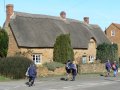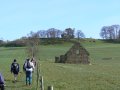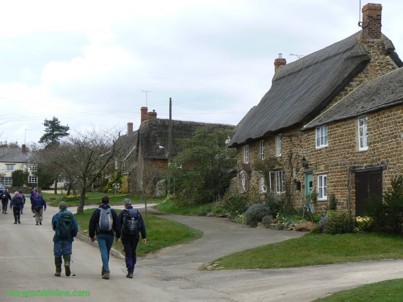 Unclassified Walk No 44 Total 1091.5 miles BT Walking Group No. 8 --- Walk led by Bob & Brian Time Taken: 2.25 hrs Distance: Enjoyment: Weather: Mild & Bright 9:50 am - Noon 13.5 miles 80% Little Breeze, Clear Temp: Cloud: Rain: Visibility: Ground Conditions: Wild Life: Blossom 12oC 45% None Clear Average daffodils & Deer Total AA: Total MH: Total LD: Total AW: Other: Total Distance: 1027.5 mls 931.5 mls 1823.5 mls 162 mls 1091.5 mls 5036 miles Companions: (Derek) Bob, Brian, Martyn, Colin, Will, Kev, Tony, Paul etc. (19 walkers) Points of Interest and LINKS: Brailes Village Compton Wynyates Windmill Hill - Tysoe Macmillan Way Shenington Gliding D'arcy Dalton Way Shenington Village Brailes Church Thatched Cottages Windmill Hill : 594 feet (181 metres)General: Started walk from the layby in Upper Brailes Warwickshire. Early spring walk in the mild March sunshine. We followed Bob and Brian, the walk leaders and organisers north through Upper Brailes, past the first public house to a path through the village allotments. We past Castle Hill and crossed the Whatcote Lane to a small spinney, where we encountered the first of many stiles and gates throughout the day's walking. Over the fields, circumnavigating Springfield Farm to Windmill Hill, passing to the west of Winderton Village and Compton Wynyates Estate. As we walked up to the Windmill on Windmill Hill we passed an isolated derelict house with only an old washing mangle inside. The ascent to the summit was worth the fine views of the surrounding Warwickshire countryside and a close up inspection of the well preserved windmill. After a well earned rest be descended to the picturesque village of Tysoe with its many well kept thatched cottages. Many of the thatched roofs featured a straw dolly on the top, usually a bird, but sometimes another animal. From Tysoe village we joined the Macmillan Way, up and over the adjacent hill to Shenington Village. Many fine views of the Cotswolds rolling hills and wildlife, including a cross country horse jumping course, a rookery and a deer which disappeared up the hill and into the woods very quickly. We stopped at the Bell Inn Shenington for a welcome pint and pub meal. Leaving our boots and rucksacks outside, trying to be as sociable as possible to the landlord and the local villagers. After a good break and natter we reluctantly continued towards Epwell Village on the D'arcy Dalton Way, passing the local gliding club. Again more fine views of the rolling Cotswold countryside, but unfortunately the sun was more scarce as the sky became more cloudy. We passed many trees and hedgerows of blossom, brightening the scenery even more. Another example that spring is round the corner. We entered Epwell village past a well kept period Cotswold cottage into the main street. Here there were more beautiful houses and cottages with well kept gardens. Martyn patted the stone dog statues in the entrance to a cottage. As we left the village we saw a glider displaying the flying skills of the local Shenington Gliders Club. Just after the lane junction by the White House, we found an isolated old Citroen Car in the woods. It was covered with plastic sheets but the wind had blown them off the car. We carefully covered the car again to protect it from the weather. Across more muddy fields to Winderton Village, with a picturesque village church situated on the hill overlooking the valley to Lower Brailes. We continued past the church and into Lower Brailes, with its large church and tower, housing the third heaviest bells in England. Proof that the village was once an important local centre for the booming wool trade. Back along the main road from Lower Brailes to Upper Brailes and the cars in the Layby. Thanks to Bob and Brian for organising a good day's walking in the beautiful Cotswold countryside. The pint went down a treat. Location: www.streetmap.co.uk , - Start & Finish: Brailes 430490/239450, - via: Windmill Hill 433145/242650, - via: Shenington 437155/242820. (Click on location and use Zoom). Hazards: Extra care required in the muddy conditions at this time of year (late winter, early spring). The areas around the stiles and gates are usually very muddy, the constant use from the popular pastime of walking and rambling. Due to the heavy usage to the stiles, they sometimes become fragile, wobbly and slippery. It is not uncommon for a walker to slip off the stile into the mud. Take care folks. Click Here to Return to 'Lifetime of Walks' Homepage | |||||