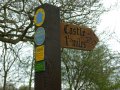 Parked at Tesco Warwick for a breakfast with Ken, before taking the bus to Kenilworth Clock Tower. Walked along Castle Road in the drizzle to Kenilworth Castle. We entered the castle grounds by The Tilyard Dam on the Centenary Way route. From the northern end of the dam we followed the 'Way' south towards Castle Farm and Oaks Farm, passing numerous fields of newly born lambs. At Rouncil Lane the finger sign posts directions are shown in 'Old English' characters. Very appropriate. From the Goodrest Cottages the path passes a council storage site. The earth banked buildings are camouflaged well and look very similar to old air raid shelters. Just before Goodrest Manor Farm we took the path to the left, which crossed the front of the distant House. Back onto the Centenary Way we turned right (or south), across a very muddy field alongside the eastern edge of the Warwickshire Golf and Country Club. As we entered Larch Covert Wood the ground was covered with numerous clumps of colourful primroses. Delightful signs that spring is on the way. Another surprise as we left the wood, a outbreak of rock. Very unusual in Warwickshire. No signs of a hole in the ground, but may have been the result of an ancient quarry. The footpath and map was followed with great care at this point. We didn't want to stray onto Wedgenock Rifle Range. The path crossed several fields, passing Middle Woodloes Buildings (with its pig weather vane) and Woodloes Farm, to the diversion of footpaths. We took the right option, crossing half right across the field to the A46 Trunk Road, Warwick By-Pass. Here there was a newly posted council notice explaining that the footpath across the road was to be diverted, from that very day, to the nearby footbridge. We believe we were the very last humans to use the footpath across the road at this point. Famous at last. South of the by-pass the walk entered the built-up area of Woodloes Park and continued to the Grand Union Canal. Another change of scenery along the canal, passing a Wren (bird) and Kate's Boatyard. A couple of hundred metres from Tesco Canal Bridge No. 46, we passed a newly built boat. Very impressive. Should we 'sell up' and buy a boat? Back to the car and the end of another enjoyable Warwickshire Ramble with Ken.