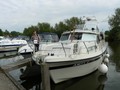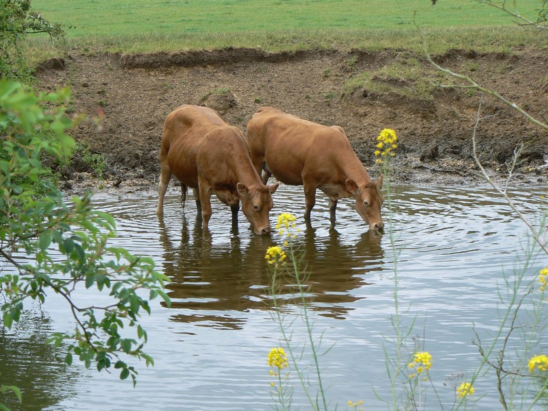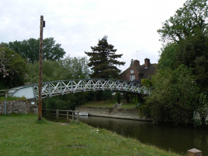 Sally parked at Benson and I drove us to Culham Lock. Started walk from lock and walked down stream alongside fields of crops towards railway bridge near Appleford. Wild iris flowers by river bank and cattle in river shallows having a drink. Didcot Power Station prominent to south as we approached Long Whittenham weird where ive rested at the start of the Clifton Cut for lunch. Continued along cut past Clifton Lock, where we sighted a red kite, to the gothic red brick elegant bridge at Clifton Hampten. Caution required while crossing the single file road bridge, best to wait for the traffic lights to change. Old toll house at Southern End of bridge surprisingly has several stuffed animals in show cases, easily seen from the door. Noe on the south bank of the river a mysterious monument is soon passed on the north bank. As we studied the monument for a short while a family of great crested grebes swam by the north shore reeds. Many impressive north shore residents as we passed Burcot Village, again of the opposite rive bank. As the rive curved round to the Castle Hill, passing dyke hills and approaching day's weir, a tree had recently fallen and partially blocked the path between the bushes. We got past, but had to crawl. Crossed the weir bridge and days lock with a short delay for photos, then to pill box by hedge and main road. Short detor from river along road to Shillingford village, right turn down Wharf Road, passing Wisteria Cottage with its wonderful showing of Wisteria, to a welcome bench by the river. The resident of adjacent, Shillinford Court was not happy for some reason and wanted us to continue our walk, so he started his noisy petrol lawn mower. We grudgingly moved on along the walled passages to Shillingfrod Bridge, after observing the historic dated water level marks on the wall with amazement.
