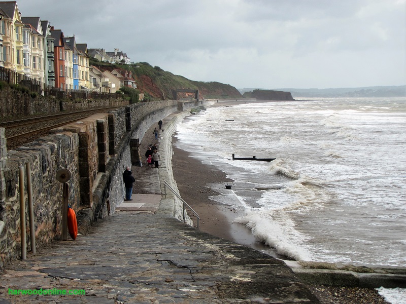 Ann & I drove to Starcross Village by the Exmouth Ferry and near Dawlish Warren. We parked in 'Royal Way' and walked the short distance to the A379, 'The Strand', bus stop towards Dawlish. We alighted from the bus very close to where we had parked on the previous South West Coastal Path (SWCP) day's walk the day before (Walk 956). We crossed to the sea wall via the same footpath and crossed the railway by the same footbridge, near the 'Coastguard Cottages'. At the sea wall we turned left, away from Dawlish towards Dawlish Warren, approximately northeast, following the Groynes protecting the beach. As we walked we looked for evidence of a new wall and sea defences, by the railway and in front of the three storey terraced houses on Sea Lawn Terrace. A storm and high tide severely damaged the railway and completely eroded the sea wall on Wednesday 5 February 2014. We did see some evidence of the repairs but only because we were looking very closely. See Photograph attached to this walk. We continued along the sea wall towards Dawlish Warren with the landscape changing from the buildings on the outskirts of Dawlish, to a high almost vertical red sandstone continuous cliff. This was a wonderful view with the sea, the railway and the high cliff, especially when a train went by at speed. The high stone wall protecting the railway slowly reduced in height as we walked towards Langstone Rock and The Warren. Soon after the Rockstone footbridge we passed a few workers repairing the small stone wall between the footpath on the sea wall and the railway. Take a note of the positioning of the lifebuoys along the wall in case of any unexpected emergencies. As we approached Langstone Rock the stone beach became larger and just after the interesting Langstone Rock, the sea wall was replaced with huge stone rocks protecting the coastline. As the path forked right away from the railway we crossed a footbridge near St Mary's Church Hall, into Dawlish Warren. Then we crossed a builders yard car park to join a path from the left and turned right around the Church Hall, passing Red Rock Holiday building on the left. The path continued alongside 'Beach Road' to a traffic island. We turned left and immediately came to a mini island on the A379 and turned right along Dawlish Warren Road, within the village of Dawlish Warren. We were heading towards the Ferry crossing the Exe Estuary to Exmouth at Starcross, so we continued north through the village on the A379. We passed the lovely hamlets of Eastdon & Cockwood, then entered Starcross on the A379. We walked through the centre of the charming little village, along the very narrow main road to the Ferry Terminal and the Railway Station on the right. The SWCP finishes at the ferry terminal and continues from Exmouth, so we walked back along A379 to 'Royal Way' and the car, to finish another good and different walk. Every day's walking on the SWCP has something different, interesting and always wonderful views of the coastline. I'm always looking forward to the next section of the 'Way'. Bring it on!!!!