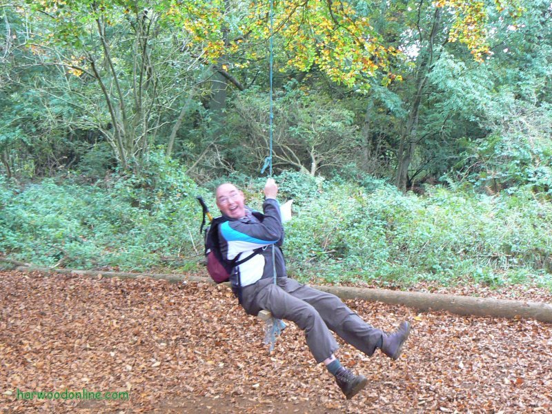 | Walk No. 707 - Whichford - 22nd October 2007 - Cousins' Walk - Derek on Swing in Whichford Wood |