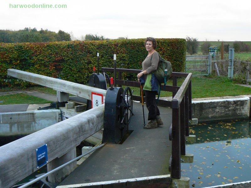 Walk No. 776 - 29th October 2009 - Thames Path - Sally on Pinkhill Lock Gate
