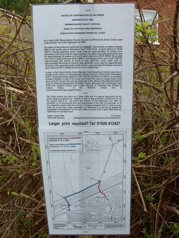 | Walk No. 711 - 2nd April 2008 - Warwick By-Pass Footpath Diversion Notice |